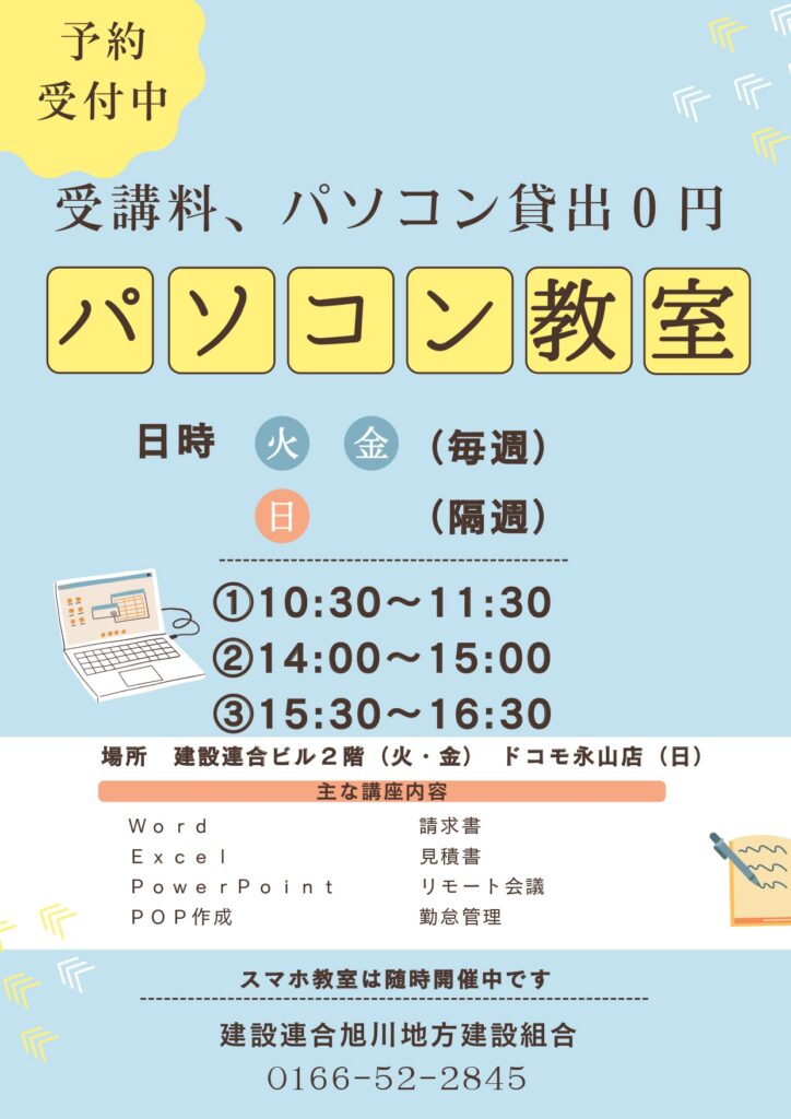 今月も建設連合では、パソコン教室を開催します!