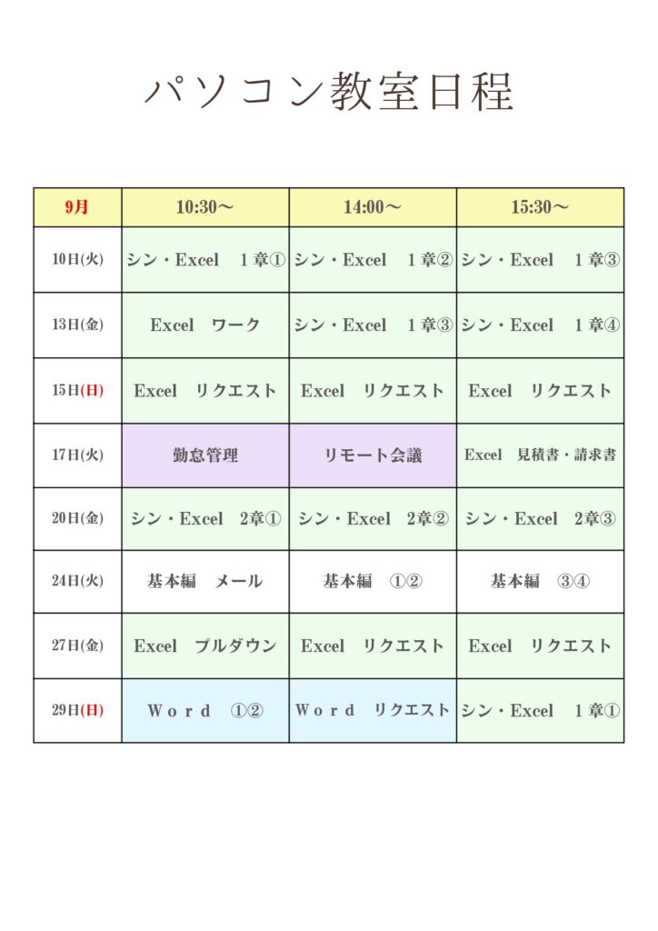 【無料】9月パソコン教室受講者募集中!!