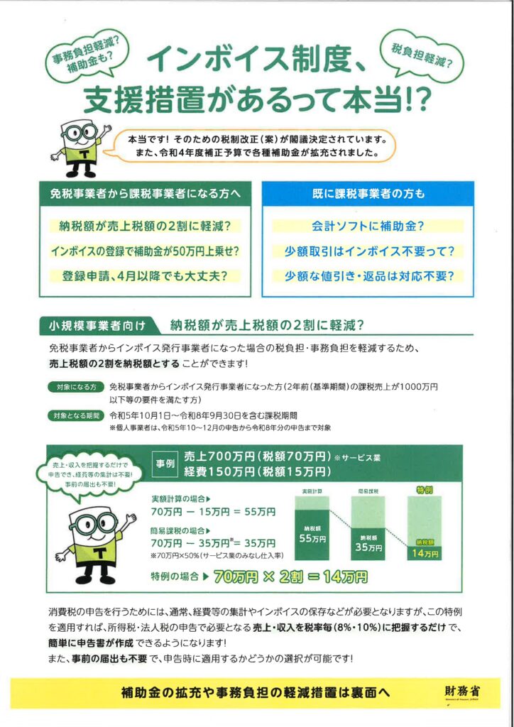 令和5年10月から消費税インボイス制度が始まります。