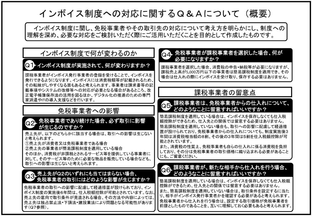 お知らせ 2022.04.05 インボイス制度Q&A 令和5年10月1日からインボイス制度が導入されます。インボイス制度に関するQ&Aを載せていますので是非ご覧下さい。 画像をクリックするとPDFが開きます。