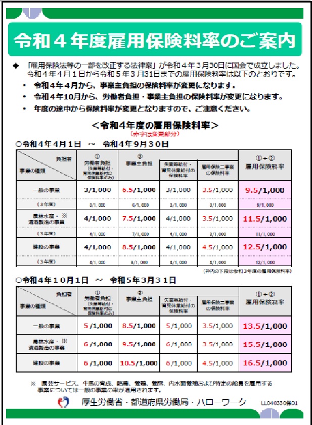 令和4年4月から、事業主負担の保険料率が変更になっています。