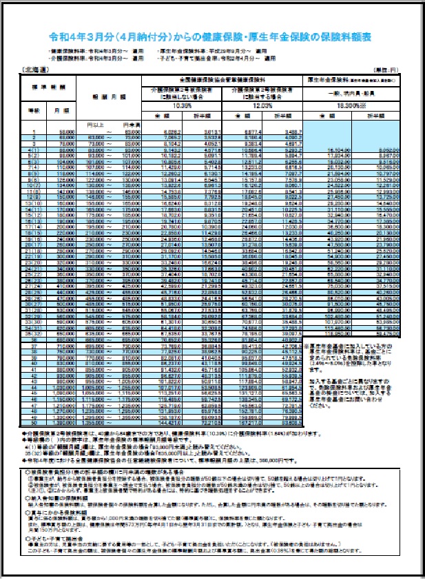 令和4年4月納期分から、健康保険・介護保険の料率が変更になっています。