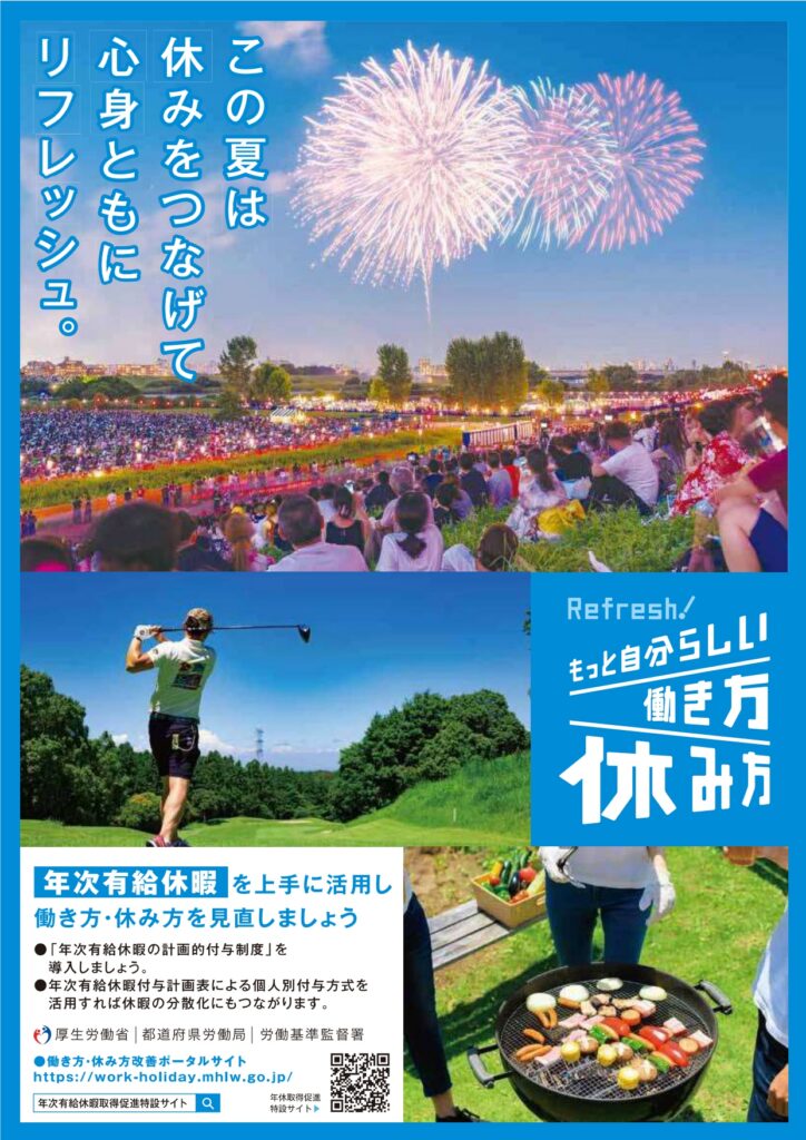 お知らせ 2024.08.23 年次有給休暇を上手に利用しましょう! 2019年4月から年5日間の年次有給休暇を確実に取得させることが必要となりました。制度の導入によって、労働者には予定していた活動が行いやすく事業主にとっては計画的な業務運営に役立ちます。くわしくは、こちら↓ ↓クリックするとPDFが開きます