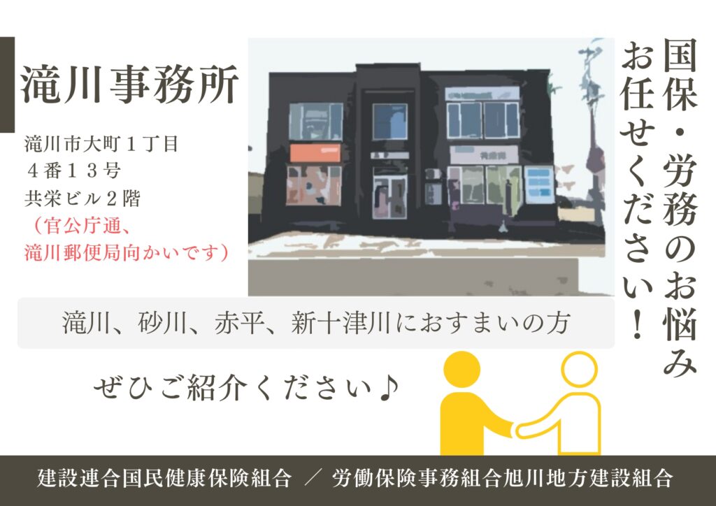 滝川近郊の方、旭川支部までお手続きにくることが難しい方は滝川事務所がございます。