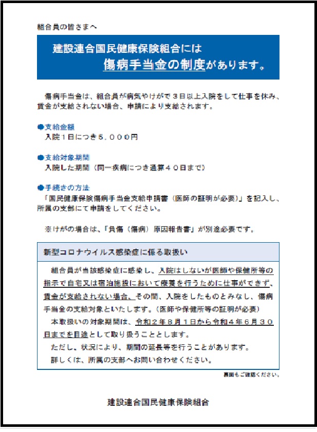 建設連合国民健康保険組合では、新型コロナウイルス感染症により