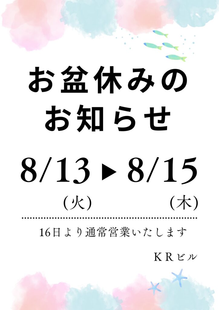 ◎お盆休みのお知らせ