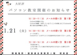 【無料】1月パソコン教室受講者募集中!!