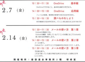 2月のパソコン教室スケジュールが決定しました!