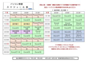 パソコン教室7~8月スケジュール決定!